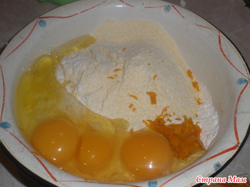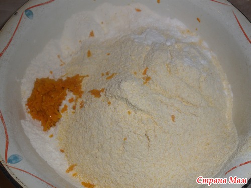 1. В миске смешать пшеничную и кукурузную муку, разрыхлитель, ванилин и цедру.