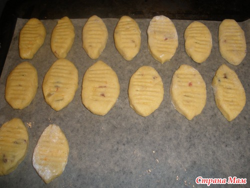 5. Сформировать печенье в виде лодочек. Выложить на противень, покрытый бумагой для выпечки.