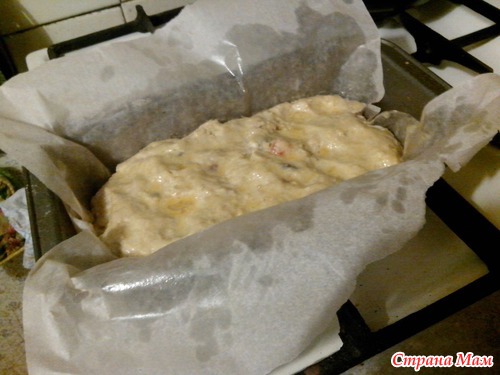 Теперь берем форму и укладываем на бумагу вторую часть теста, сверху тоже обмазываем яйцом (красивая корочка получится) Пока лепешки пекутся хлебушек успеет еще немного подойти.