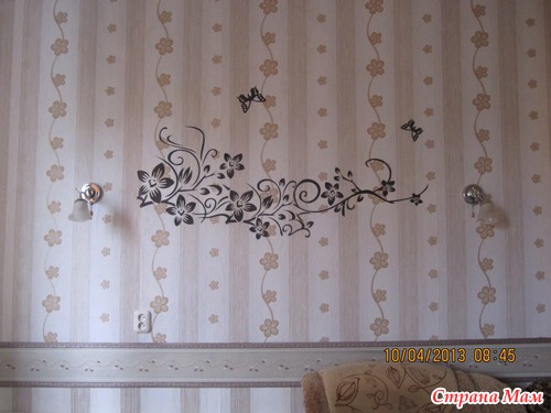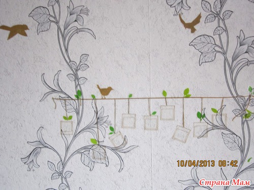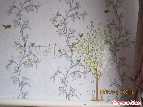конечно на этих обоях немного рябит, но обои новые, только тем летом наклееные, а дерево то так понравилось что все равно решила наклеить, вот вставлю в рамки фото и будет смотреться более ярче.