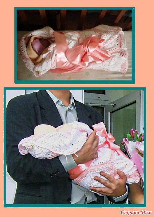 А ещё через 2 месяца дочу встречали из роддома в обновке: