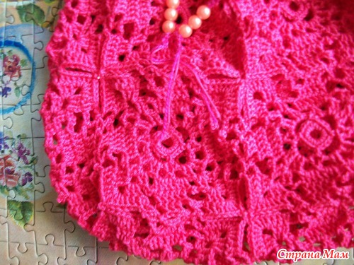 моя схемка с добавлениями - красным цветом - 1 ст/нак после 3 возд. петель, после него тоже 3 в. п. виесто 7 возд. птель в оригинале. Это чтобы дырочки между квадратиками были поменьше.