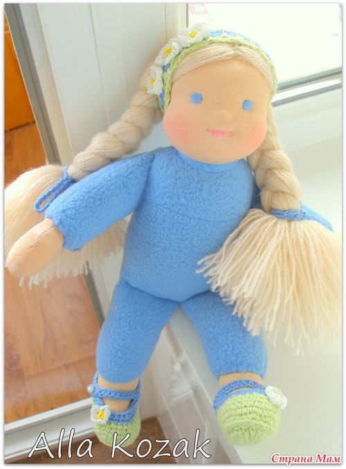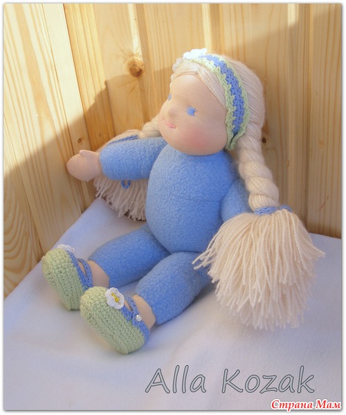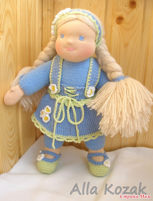 Наконец то я закончила эту весеннюю куколку. Имя не могу придумать, решила, пусть ее называет будущая мамочка. На фото кукленка получилась очень мордатая. Ну, что поделаешь, у фотографа руки не з того места растут ( это я о себе). Как такое может быть? Проработала 5 лет в фотосалоне (продавцом), а фотографировать "мыльницей" не научилась. Девочка ростом 35 см.
