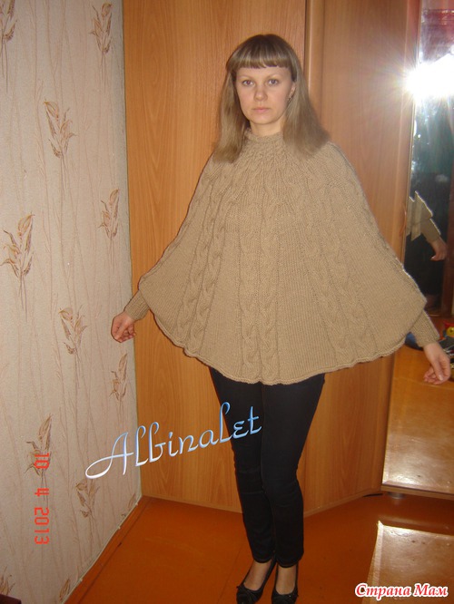 Супер!Я тоже распечатала описание этого пончо!Но на весну не успею связать..попробую к осени!Какие ниточки?Сколько ушло?Какие спицы?У вас какой размер?
