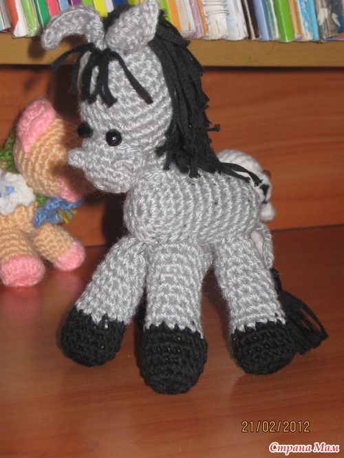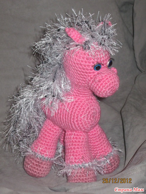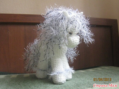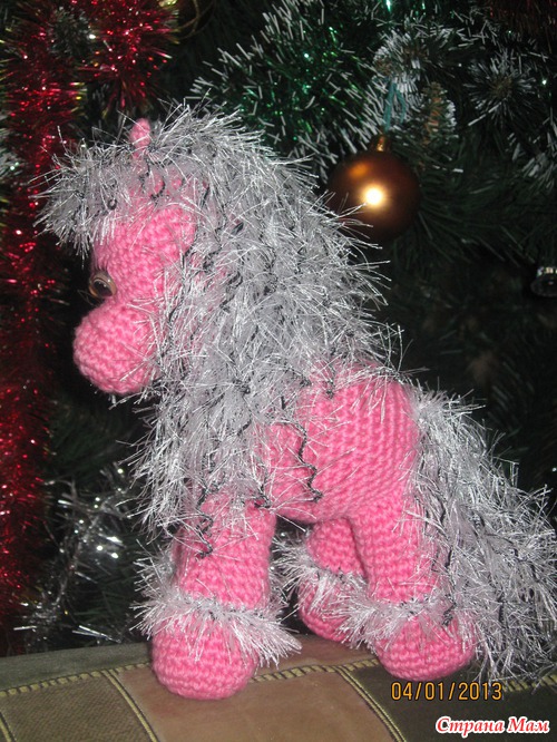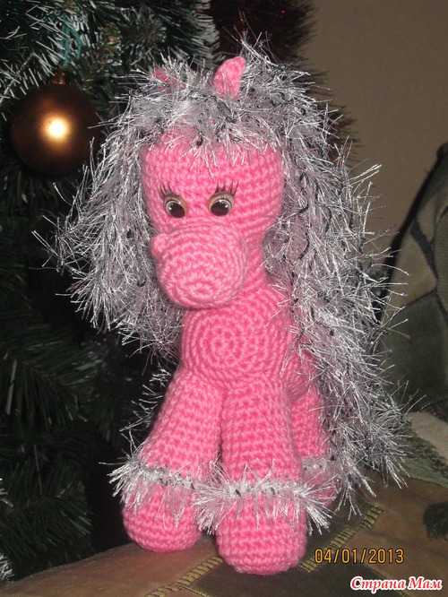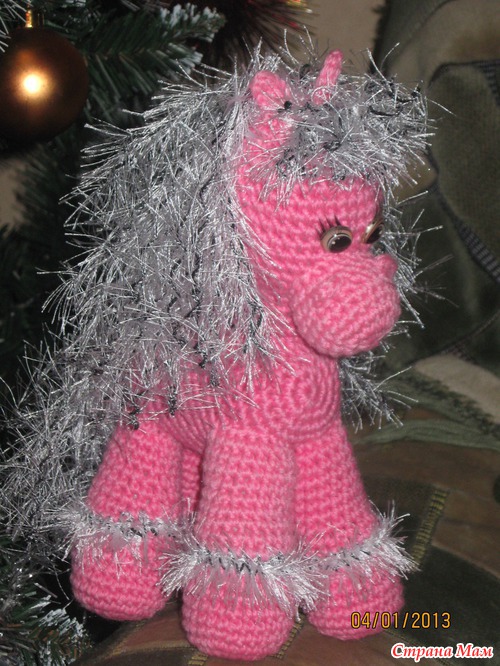 а сколько ей???? у меня заказывали для девочки в 4-ом классе)))) мама говорит-она теперь с ней спит))) а самой маленькой хозяйке-годик всего.....еще только едет к ней лошадка))))