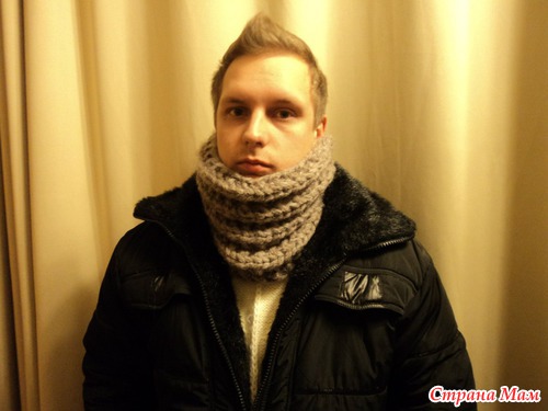 снуд связан из новой пряжи кантри ализе в 100 гр 34 метра. акрил. шерсть. нейлон. мохер. пряжа шнурочком толстеньким. мягкая. теплая