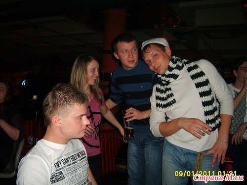в клубе с друзьями. черно-белый шарфик крючком