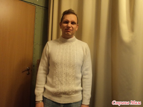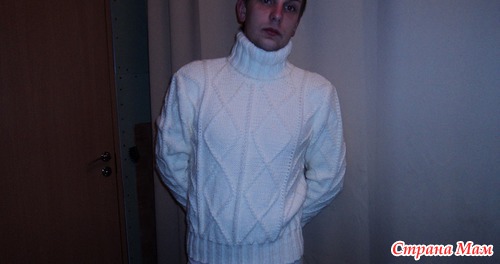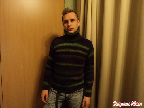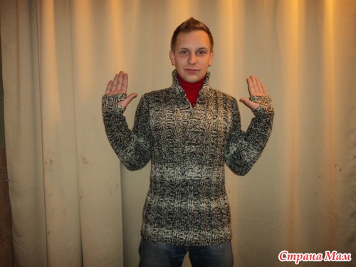 пряжа файн в 3 нити полушерсть. Красивый свитер получился. Уже подарен другу