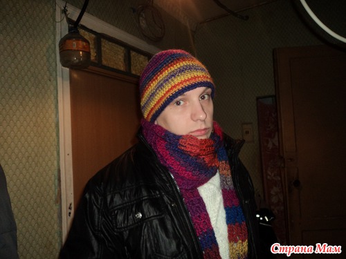 Санечка(24 года) с удовольствием носит мои вязалочки. Здесь малая часть, не поймать, не сфотографировать. все снуды и шарфики уже раздарены друзьям и подружкам