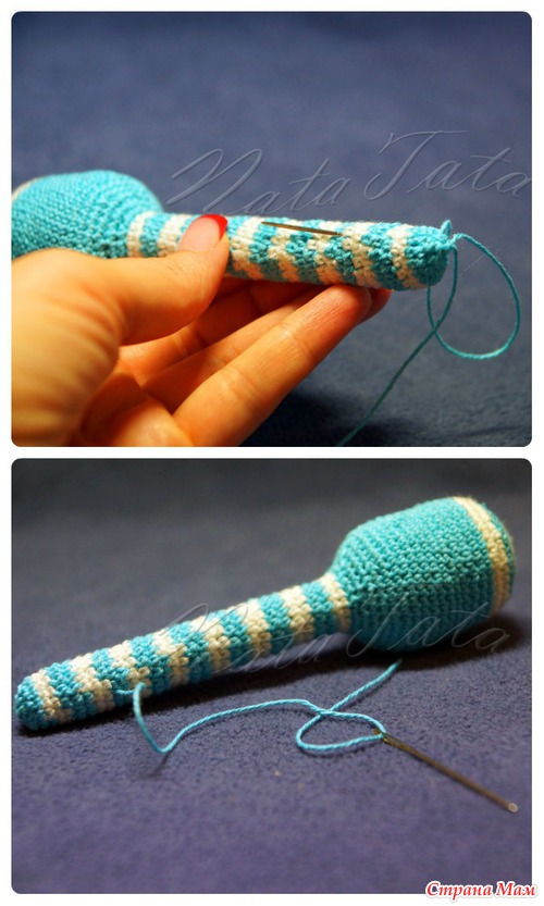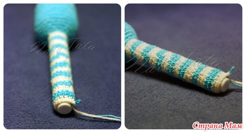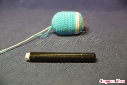 Важно: ручку можно вязать и без вставки фломастера, просто связать трубу и набить ее набивным материалом (у меня это холлофайбер), но мне сейча больше нравится с фломастером, она хорошо держит форму…