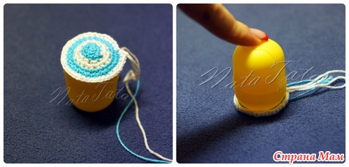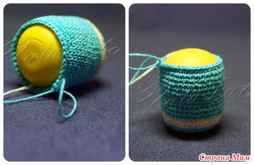 2. Закончите прибавление в тот момент, когда диаметр связанной заготовки, и диаметр донышка контейнера не станут одинаковыми (у меня это 7 рядов).
