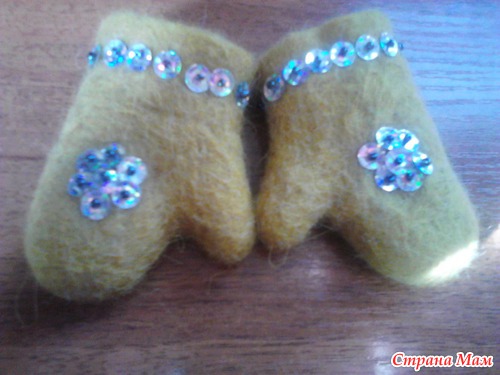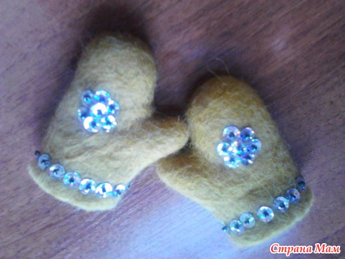Вот успешно свалялись мои мини-варежки. Обшила их блестяшками, думаю владельцам понравиться. Они красиво блестят на солнышке и переливаются, жаль, что не видно на фото. Всем благодарю за внимание, критику и оценки! Читать полностью