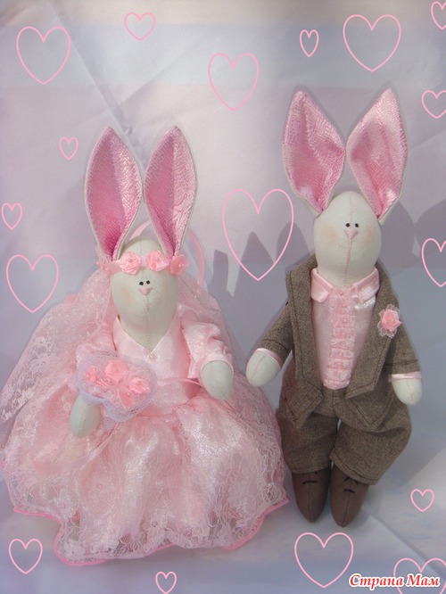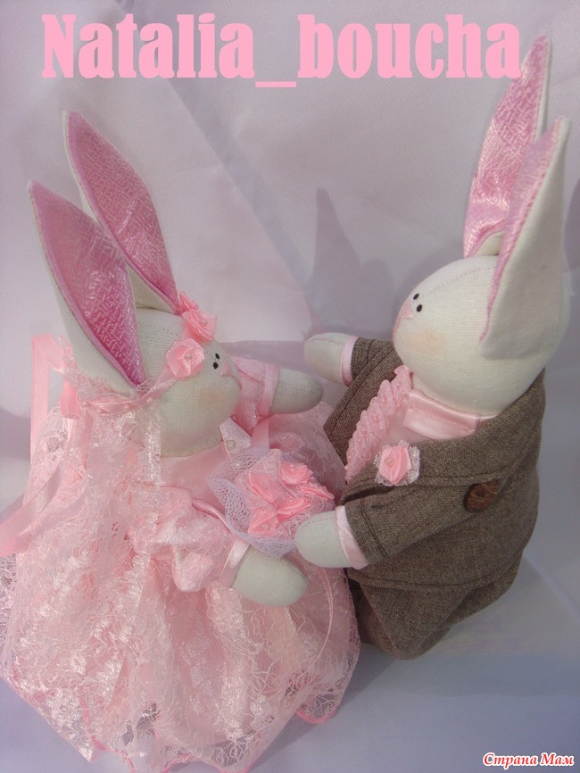 В прошлом году Оксана делала пару зайцев-молодоженов в подарок сестре на свадьбу https://www.stranamam.ru/post/3731301/,