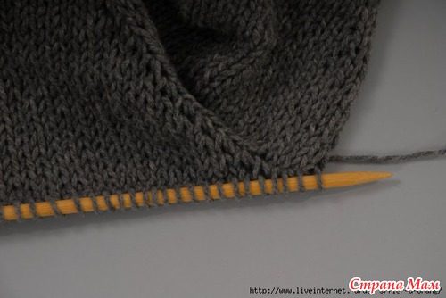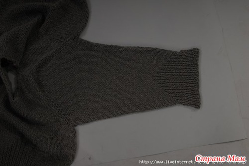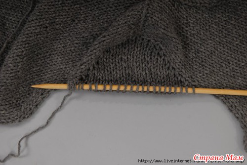 3. Для формирования оката рукава, в начале каждого ряда из кромочной петли вывязывать 1 новую петлю.