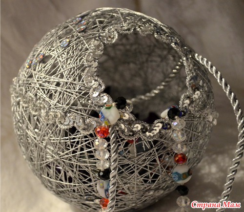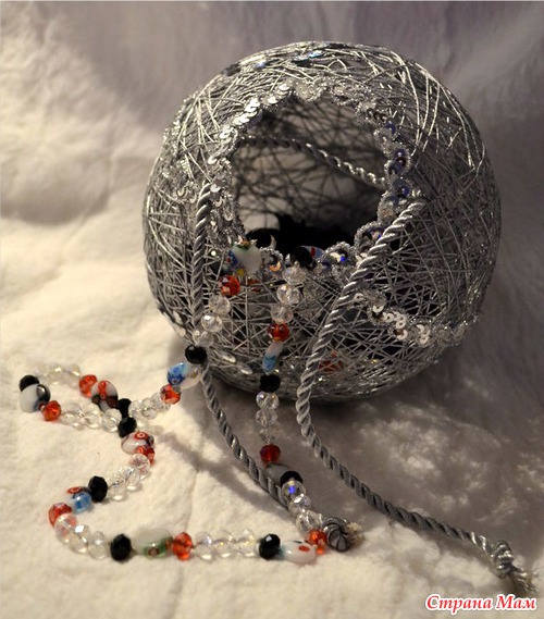 нитки наматываются на воздушный шарик. естественно с клеем. и когда все высыхает шарик лопаем и вытаскиваем через дырочки