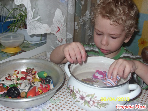За неделю наша рыбка выросла в воде до громадных размеров. А мы опять баландались в воде и играли в наших любимых животных. Каждый день ребенок сам берет кастрюлю и просит воды, вот как по душе пришлось!!!