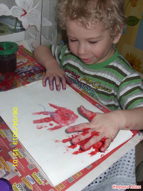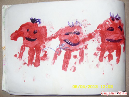 Рисовали ладошками, это мы любим...