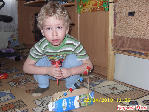 Из поделок, еще вот такой простенький кораблик, только он у нас по суше плавал, машины перевозил )))))