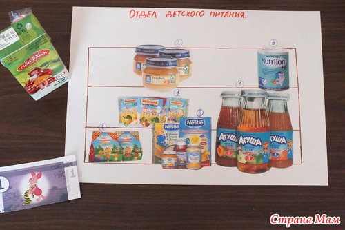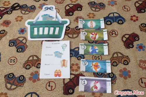 я с своими тоже в магазин играю,но попроще...но ваша игра меня впечатлила..и насчет денег здорово придумано!(я пока брала деньги от настольной игры старшего сына,или по старинке на бумаге карандашом заштриховывали настоящие монетки и вырезали денежки).
