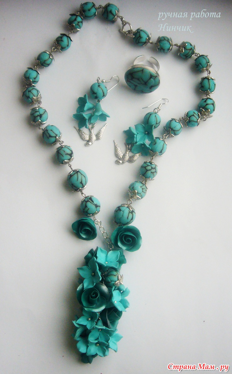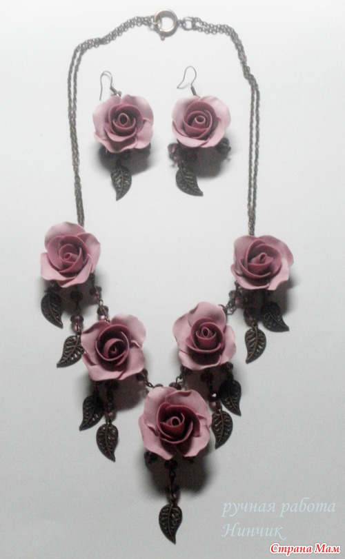 Набор "Smoky Rose" материал полимерная глина, металлическая фурнитура, чешское стекло бусины. Размер примерно 50 см
