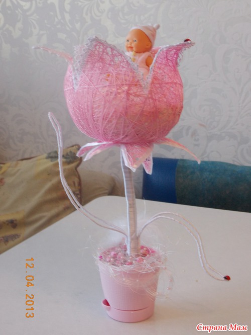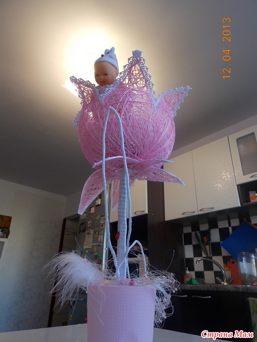 , а я давненько вынашивала идею цветок с Дюймовочкой. И вот, пришло время! Выношу на ваш суд. Критику принимаю, но только помидорами не закидывайте, я такое впервые делала