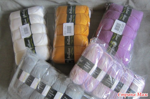 Магазин решил помочь нашему проекту и подарил пять упаковок пряжи BRILLIANT