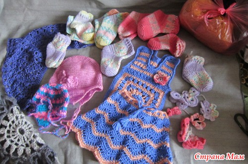 Ира связала для малышей носки крючком, шапочки, комплект для девочки - малышки, косыночку.