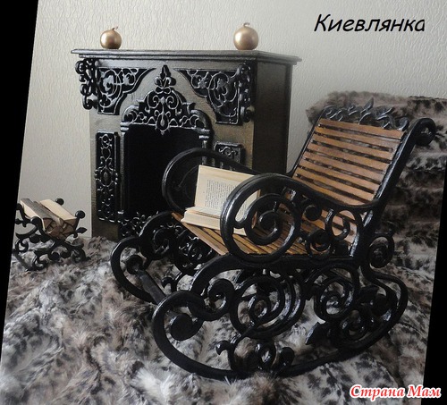 Моя кукломебель 10 - юбилейная)) (камин, кресло-качалка и подставка для дров)