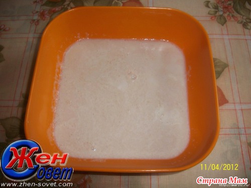 Развести дрожжи в теплой воде с щепоткой сахара. В дрожжи добавить стакан теплого молока.