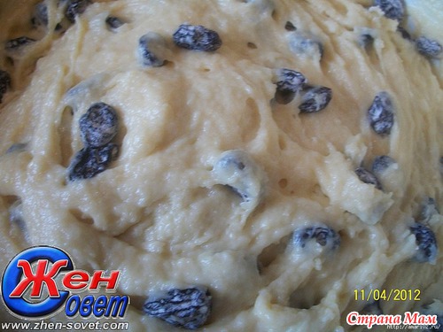 Добавить изюм, обваленный в муке. Тесто должно быть мягкое и липкое.