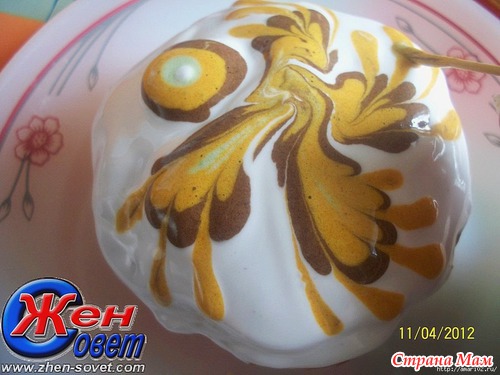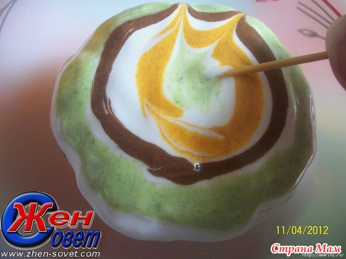 С помощью палочки (зубочистки) сделать красивые разводы.