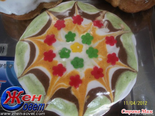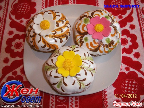 Сверху росписи можно украсить цветочками из мастики или цветной посыпкой.