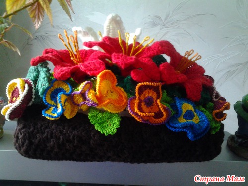 Пока была в декрете училась вязать крючком. И вот связалась такая корзинка с цветами. Правда доча стала подрастать и ооочень ее тянуло к цветочкам. Пришлось сейчас убрать корзиночку в чулан до лучших времен
