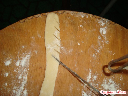 половину теста делаем елочки