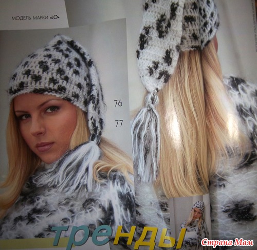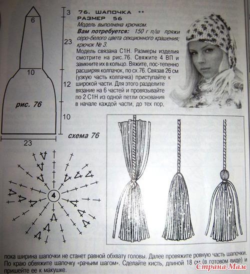 Вдохновилась я идеей такого колпачка с журнала МОД, супер выпуск №543. Выкладываю фото и описание с журнала(я немного изменила и размеры и низ и кисточку