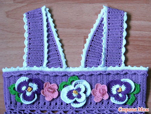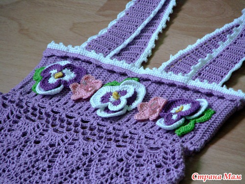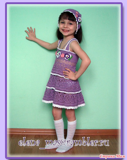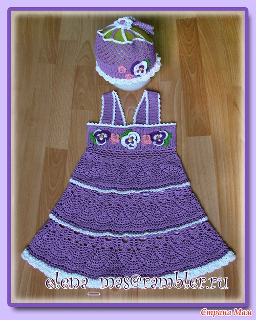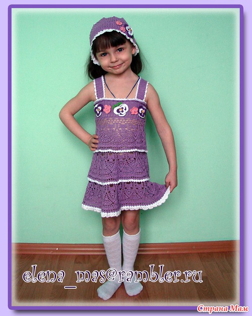 Нитки Анна Твист. Ушло примерно 180 гр. сиреневого цвета. Описание панамочки брала тут: http://club.osinka.ru/ Схема на сетку Основная схема сарафана всем известна, но на всякий случай выкладываю еще Схема анютиных глазок Читать полностью