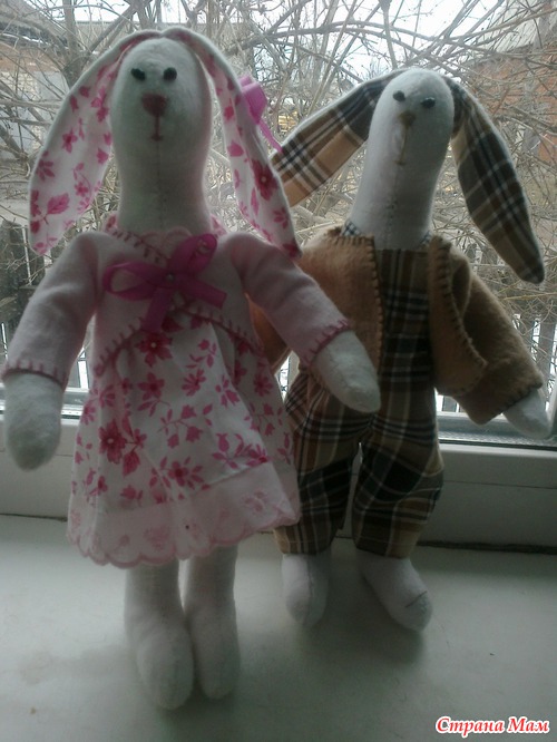 На шитье игрушек запала недавно, первый опыт с тильдой получился не очень удачный, а вот зайки уже получились получше (на мой взгляд) Не судите строго, я еще только учусь...