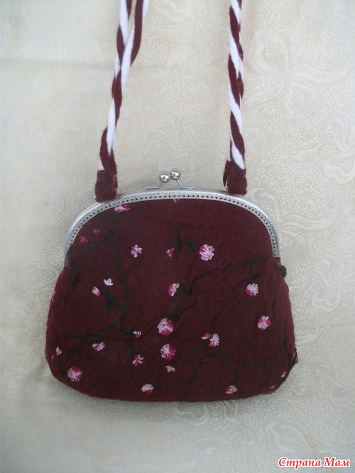 Давно хотела попробовать свалять сумку с фермуаром, Понравилось очень. Сумочка получилась плотная -хорошо держит форму.