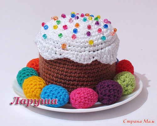 Вязаная пасочка и пасхальные яйца.