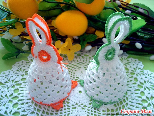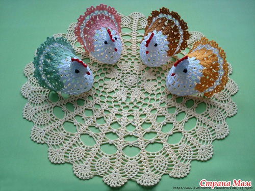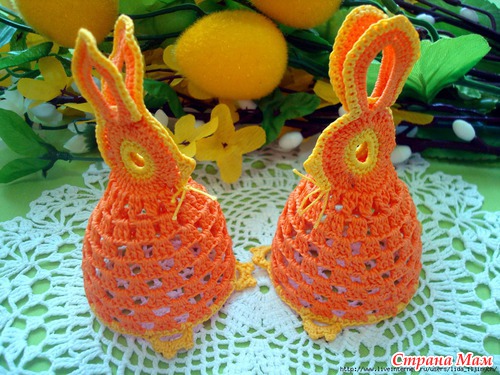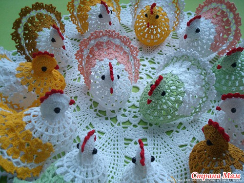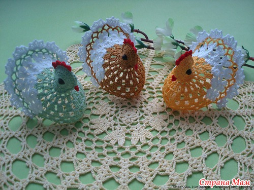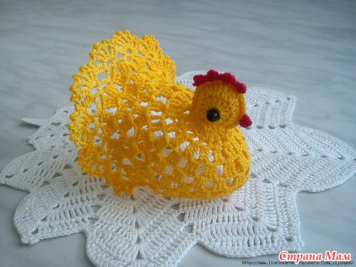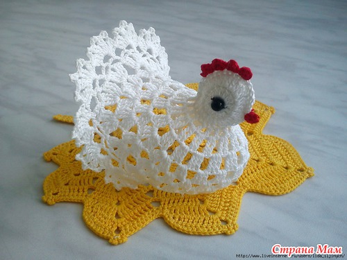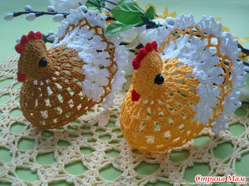 обалденные и курочки и зайчики !! такие красивые ажурные воздушные супер просто!! а скажите они у вас как стоят? накрахмаленные или еще что-то?? я так понимаю что яичко нужно внутрь класть?