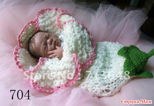 Кстати, там только розовым и зеленым крючок, сам цветик спицами.