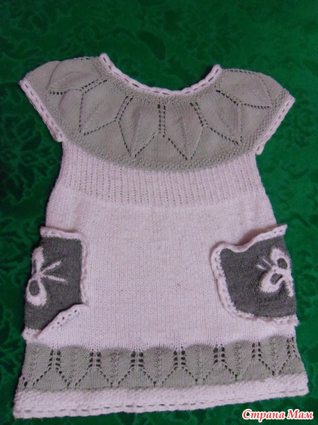 Спасибо за идею замечательного платья. Вот такое чудо связала для своей маленькой принцессы. Дополнила беретиком связанной тем же узором. Комплект немного на вырост, как раз к весне.
