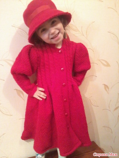 Связала своей малышке комплектик уже давно, но так как шить я не умею, а мне хотелось подклад, отдала знакомой швее, и долго пришлось ждать, но главное, что получили мы наше пальто в аккурат к сезону)))))))