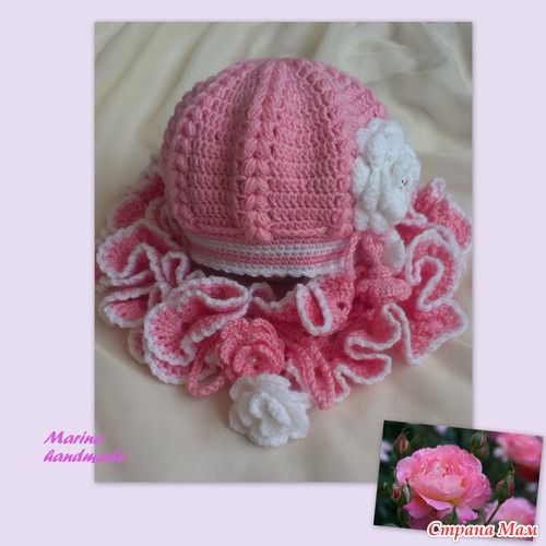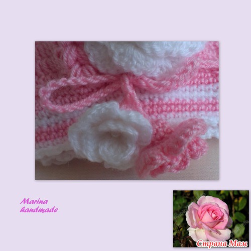 На завязках для шапочки связала маленькие цветочки, чтобы не мешали в носке малышке.