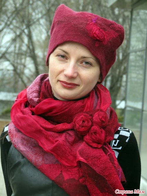 а я вчера свой первый беретик сваляла, жаль только, что по привычная пурпурно-сиреневая гамма к рыжеватому новому цвету волос не подходит...вот и думаю, что с ним сделать - или перекраситься снова?