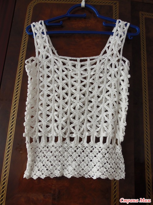 Топик связался. Правда схемки у меня нет, вязала давно уже. Состоит из отдельных мотивов, которые я потом долго и нудно собирала в кучу. В общем домучила я его и лежал он в шкафу, а теперь вот достала и думаю можно ли ТАКОЕ на люди одевать? Ну, если маечку под низ конечно ещё...???