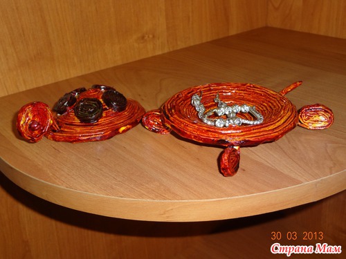 Как - то в Стране Мам наткнулась на мастер - класс по созданию черепашек из газетных трубочек и решила его повторить. Результат мне понравился, а особенно понравился сам процесс изготовления шкатулки.