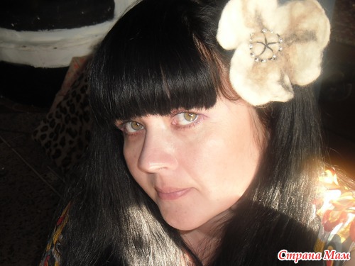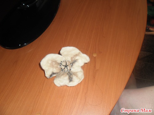 Вот он, мой первый, неказистый, но уже любимый цветочек-заколочка)