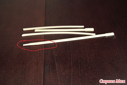 Вот такими, это для суши, они у меня разные, т. е поломаны по разному, не поломанной палочкой корректирую в самом конце перед зашивкой: