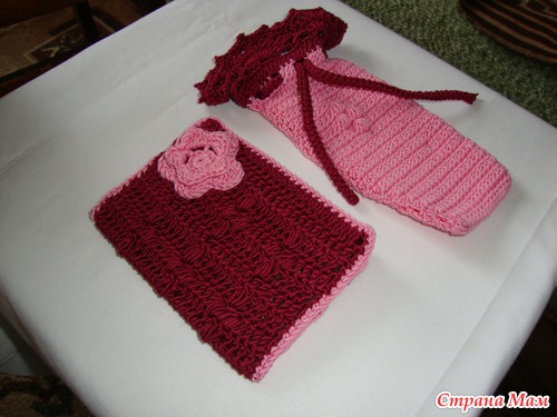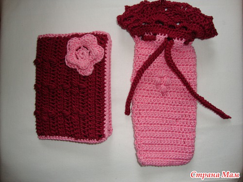 Ну, а после подружки следует юбилей у бабушки - 85!!! Вот это дата! Она очень у меня выпрашивала обложку на паспорт вязаную. Вот решила ее порадовать не просто обложкой, но и сделать вот такой комплектик (обложка+очечник). Бабушка конечно тоже вязать умеет (как все нормальные бабушки))))), но 85!!! это не 15!!, бабуля у меня конечно бодрячком, но зрение подводит.